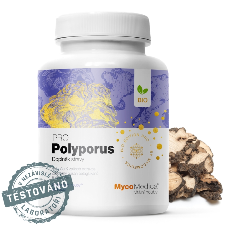 Bio Polyporus PRO – 90 kapsúl je doplnok výživy získaný z dvojitého extraktu huby trúdnik (Polyporus umbellatus), vďaka čomu si zachováva množstvo účinných látok v optimálnom pomere, najmä betaglukánov (30 %).
